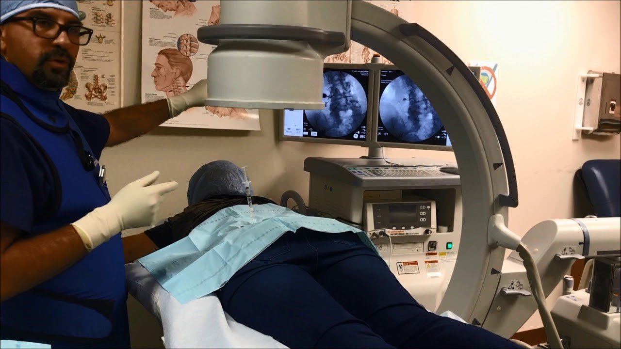 4. การฉีดยา block เส้นประสาท เป็นการลดอาการปวดโดยใช้ยาที่ออกฤทธิ์เฉพาะที่ ฉีดเข้าไปบริเวณที่มีโรคหมอนรองกระดูกสันหลัง โดยใช้เครื่อง X-ray ความเข้มต่ำเป็นตัวนำทางตำแหน่งเข็มอย่างแม่นยำ ใช้ในกรณีที่ปวดมาก โดยเฉพาะอาการปวดลงขา