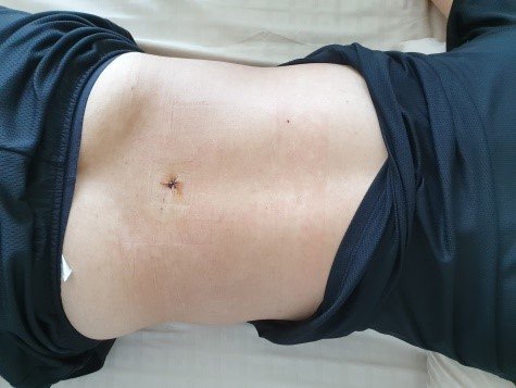 แผลผ่าตัด ผ่านกล้อง 2 ระดับ และเคยมีผ่าตัดแบบเปิดแผลมาก่อน
