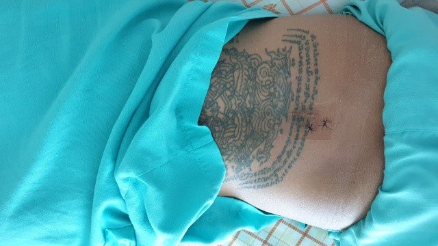 แผลผ่าตัดหมอนรองกระดูกผ่านกล้อง 1 ระดับ